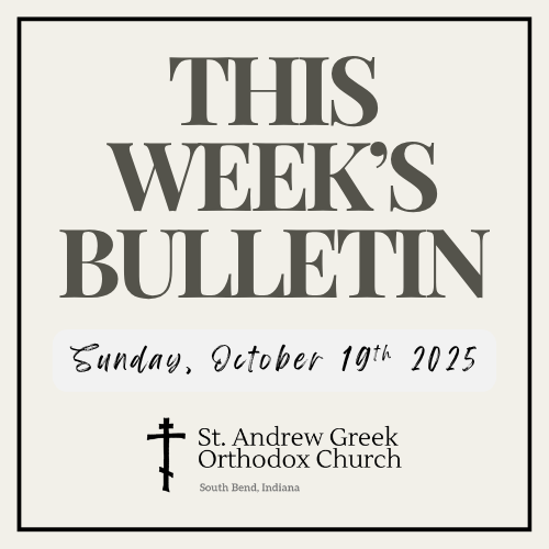 Weekly Bulletin Lauren 10/17/25 Weekly Bulletin Lauren 10/17/25 3rd Sunday of Luke Click the image for a copy of this week’s bulletin Read More Weekly Bulletin Lauren 10/10/25 Weekly Bulletin Lauren 10/10/25 Sunday of the 7th Ecumenical Council Click the image for a copy of this week’s bulletin Read More Weekly Bulletin Lauren 10/3/25 Weekly Bulletin Lauren 10/3/25 2nd Sunday of Luke Click the image for a copy of this week’s bulletin Read More Weekly Bulletin Lauren 9/26/25 Weekly Bulletin Lauren 9/26/25 1st Sunday of Luke Click the image for a copy of this week’s bulletin Read More Weekly Bulletin Lauren 9/19/25 Weekly Bulletin Lauren 9/19/25 Sunday after Holy Cross Click the image for a copy of this week’s bulletin Read More Weekly Bulletin Lauren 9/12/25 Weekly Bulletin Lauren 9/12/25 The Elevation of the Venerable and Life-Giving Cross Click the image for a copy of this week’s bulletin Read More Older Posts